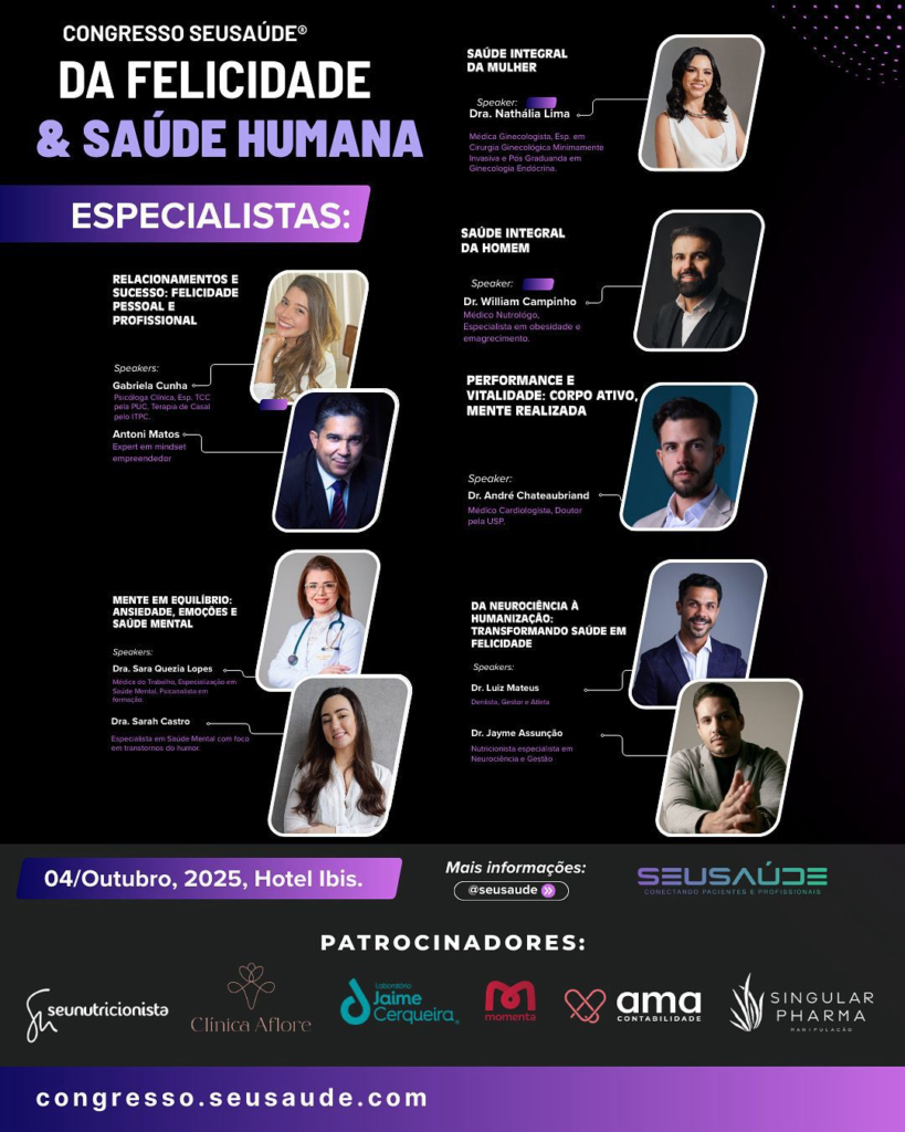 Neste sábado, dia 04 de outubro, o Hotel Ibis será palco do 1º Congresso SEUSAÚDE da Felicidade & Saúde Humana – um evento inovador que reúne ciência, bem-estar e desenvolvimento pessoal em um único espaço.