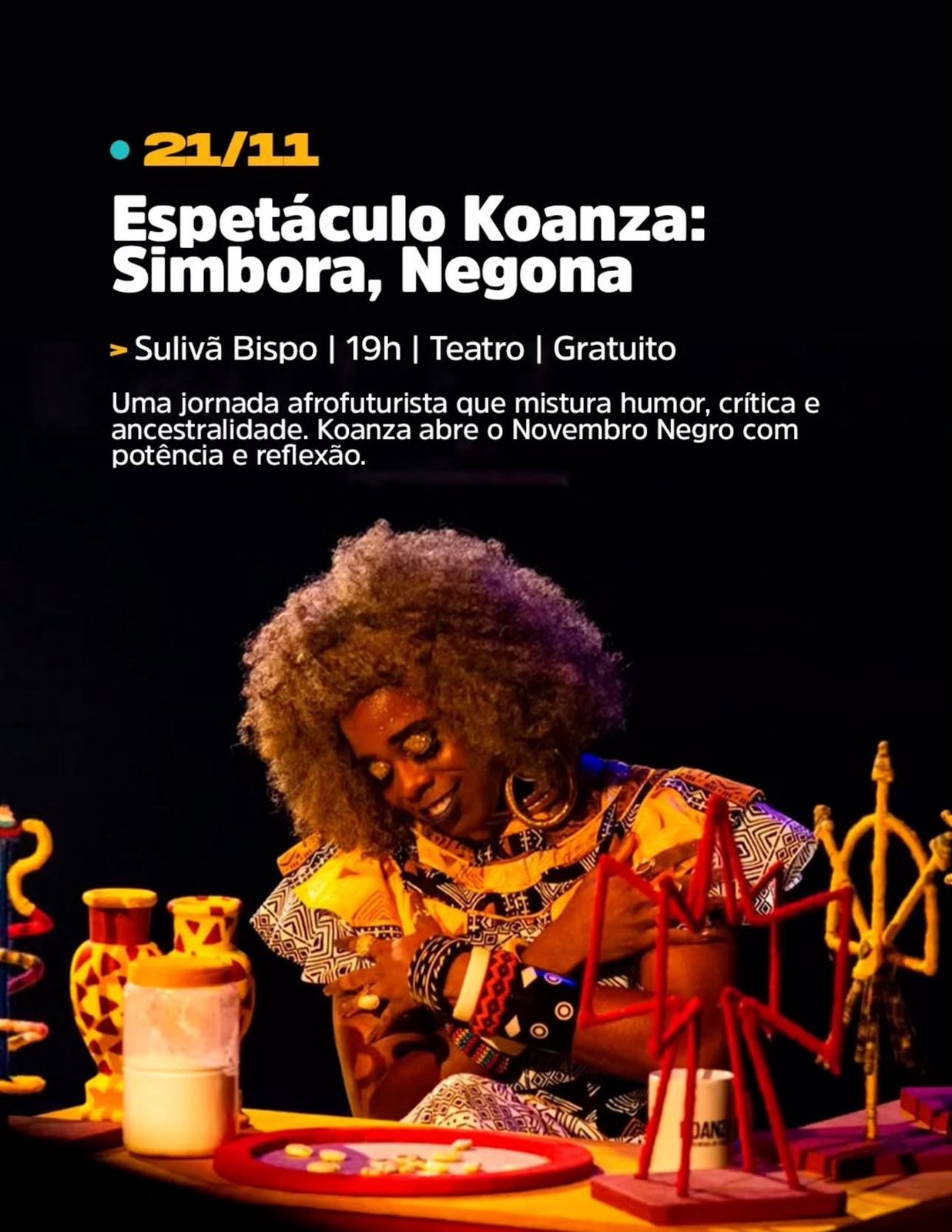 Nesta sexta, 21 de novembro, o Teatro do Centro de Convenções recebe o espetáculo “Koanza: Simbora, Negona”, com Sulivã Bispo,