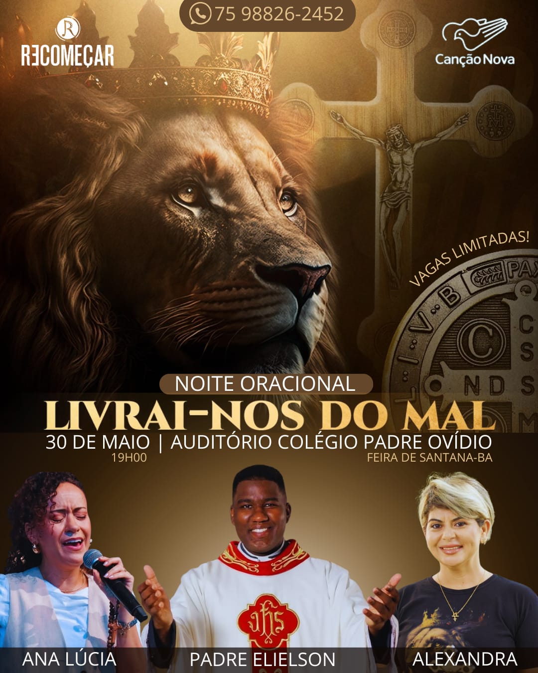 Para obter mais informações e adquirir os ingressos do Livrai-nos do Mal, pode acessar o Instagram @recomecaroficial ou pelo whatsapp 75 988262452. Os ingressos estão sendo vendidos por R$35,00.